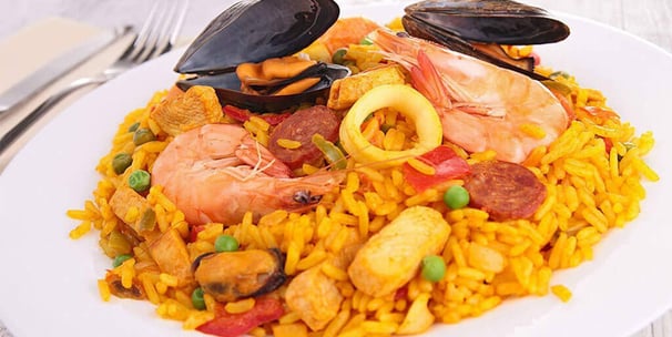 Arroz al estilo norteño con filetes de pescado y mariscos al grill. Acompañado de salsa criolla y crema de ají amarillo.
