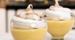 Dulce tradicional limeño con manjar blanco y merengue. Toques de vino oporto y canela espolvoreada.
