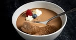 Espuma suave y ligera de chocolate semiamargo. Servida fría con virutas de chocolate encima.